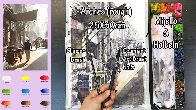 Landscape Watercolor - way to market (sketch & color name view, watercolor material ) NAMIL ART