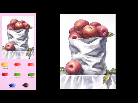 Basic Still-Life Watercolor - a bag of apples (3x speed, View color names) NAMIL ART